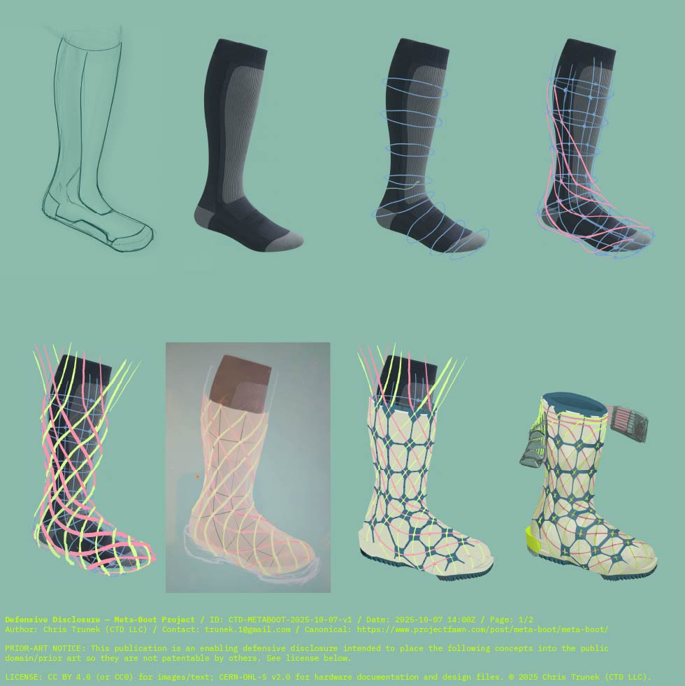 Defensive disclosure post: Concept art for tunable stiffness meta-tile based custom 3D printed ski boots with phantom-foot sensing, knee protecting releasable heel lugs